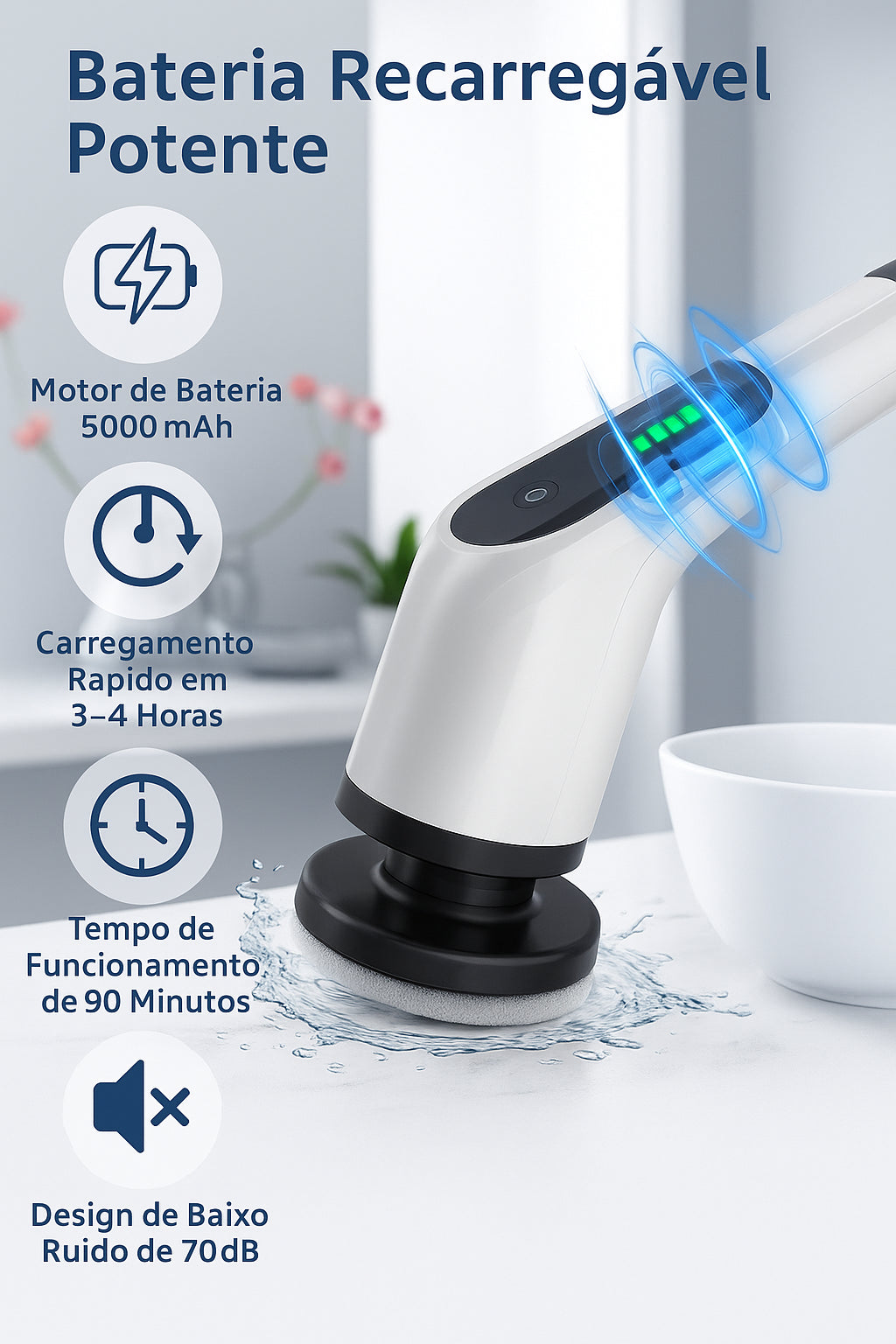 Equipada com um motor magnético de alto torque, essa escova oferece uma limpeza profunda em qualquer superfície. Adeus à sujeira pesada, gordura e manchas difíceis – tudo sai com facilidade!