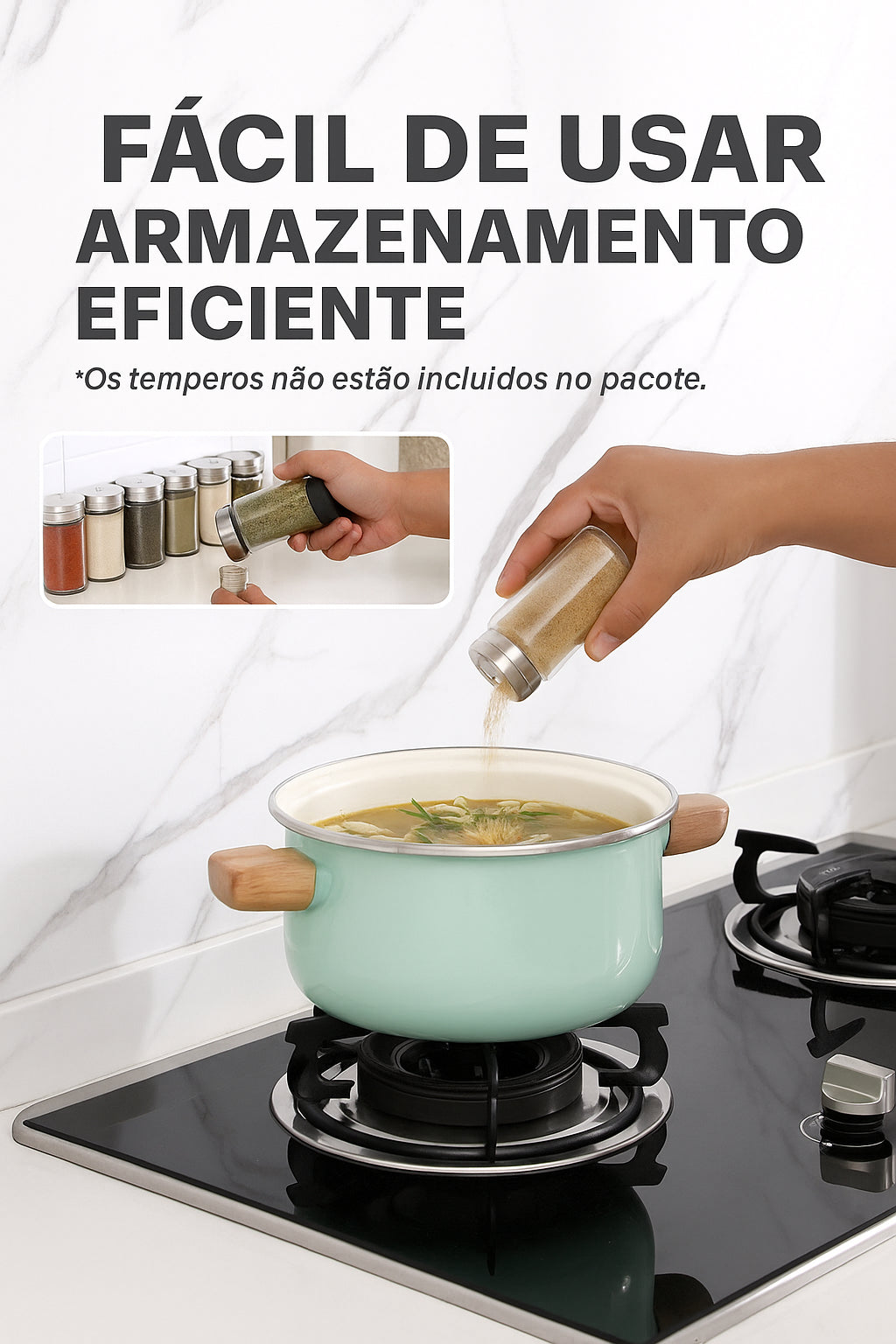 🌿 Preserva o sabor dos alimentos: Potes vedados de vidro que mantêm os condimentos sempre frescos.