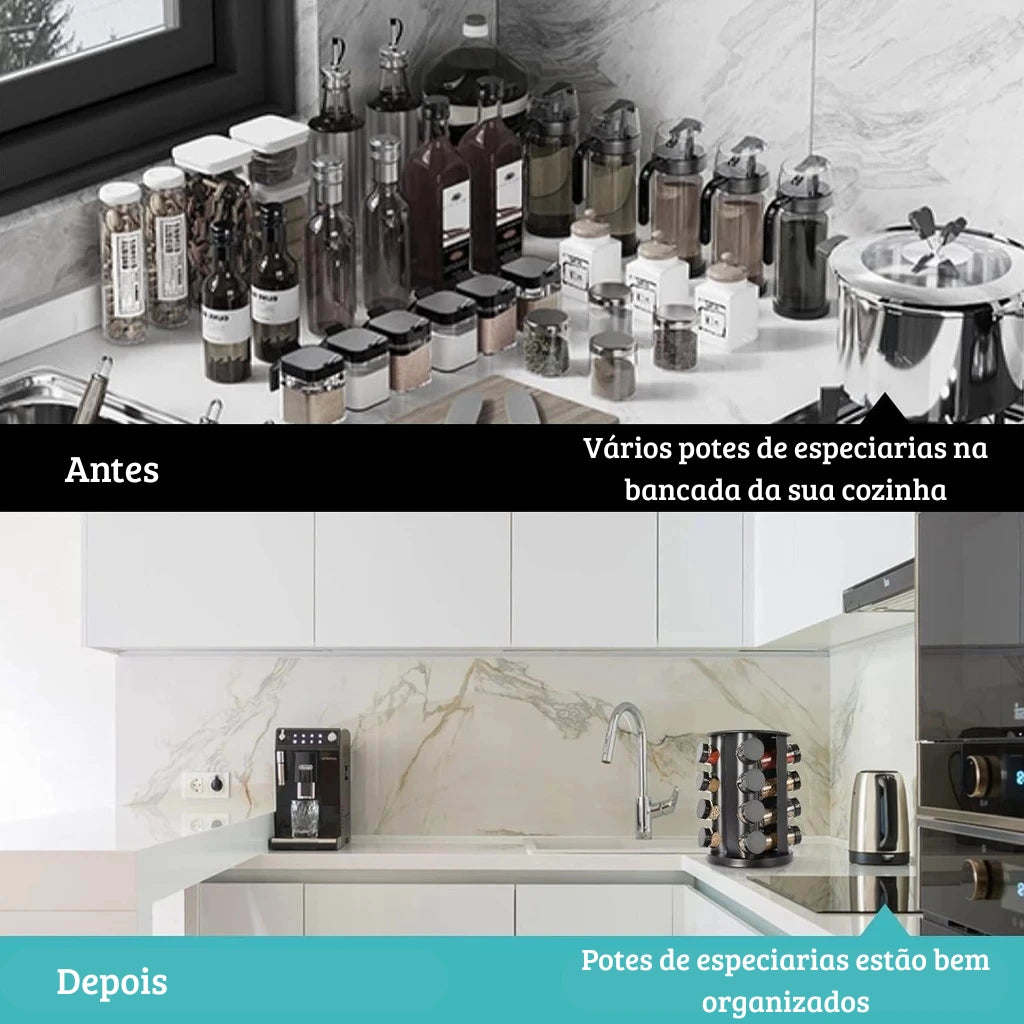 📦 Organização instantânea: Tenha seus temperos sempre à mão, bem organizados e visíveis.