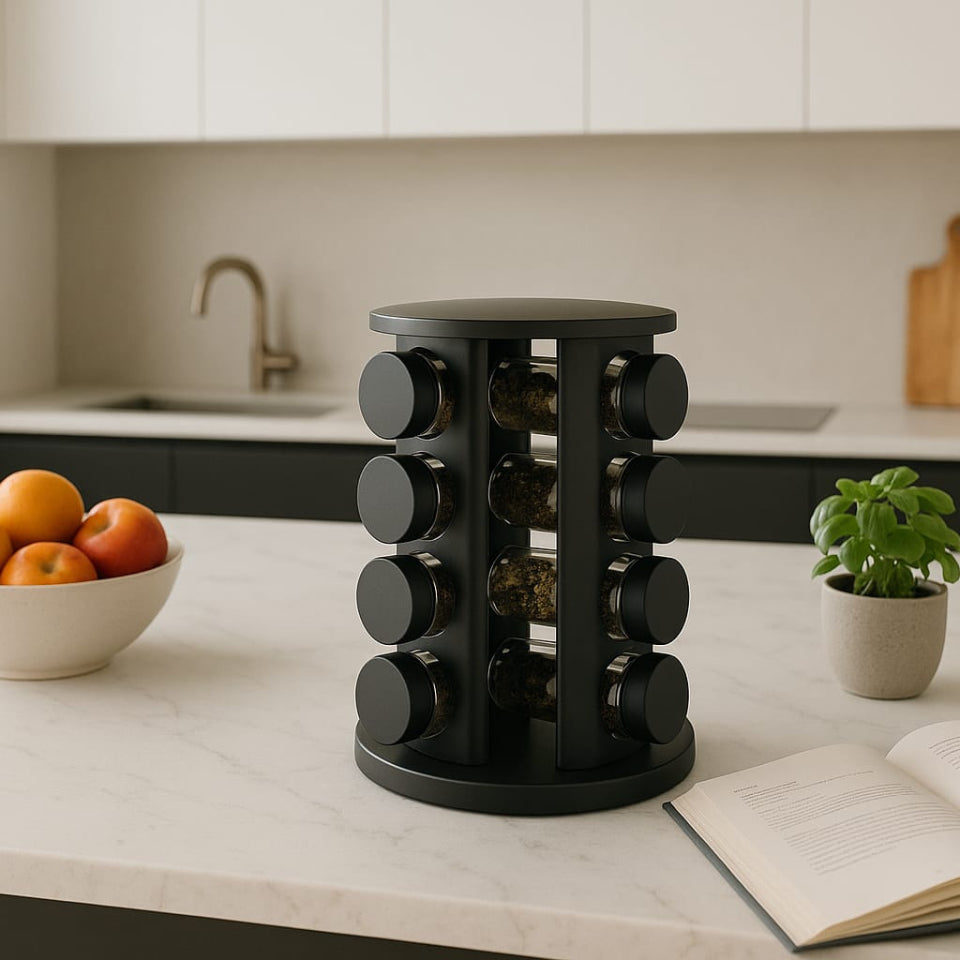 Chega de perder tempo procurando temperos no armário! Com nosso Porta Condimentos Giratório, tudo fica visível, acessível e ao seu alcance com um simples giro.