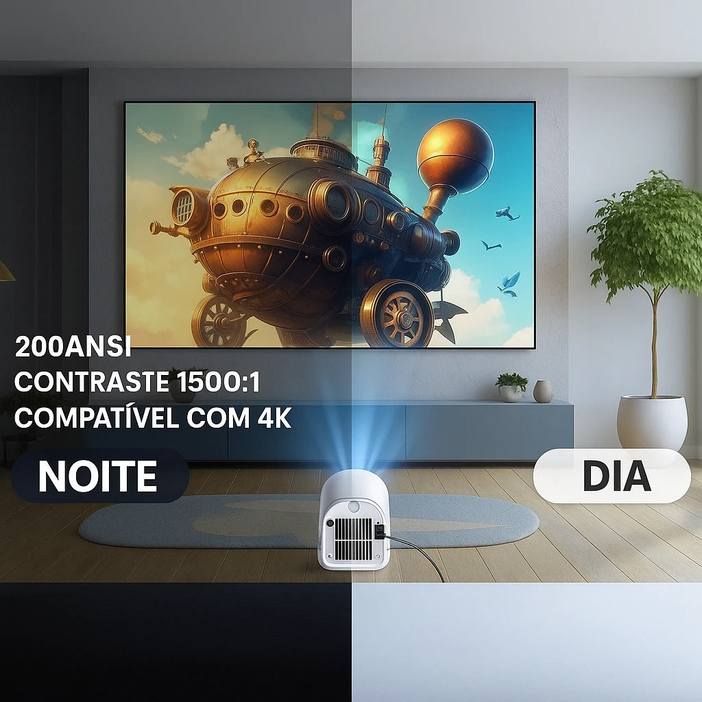 Prepare-se para se surpreender com a resolução nativa de 1280x720P com suporte a 4K e um brilho de 160 ANSI, que garantem imagens mais claras e vibrantes mesmo em ambientes com iluminação moderada.