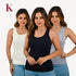 A Regata Feminina Canelada Karesso é feita em malha premium (95% algodão + 5% elastano), garantindo toque macio, respirabilidade e ajuste ao corpo com elegância.