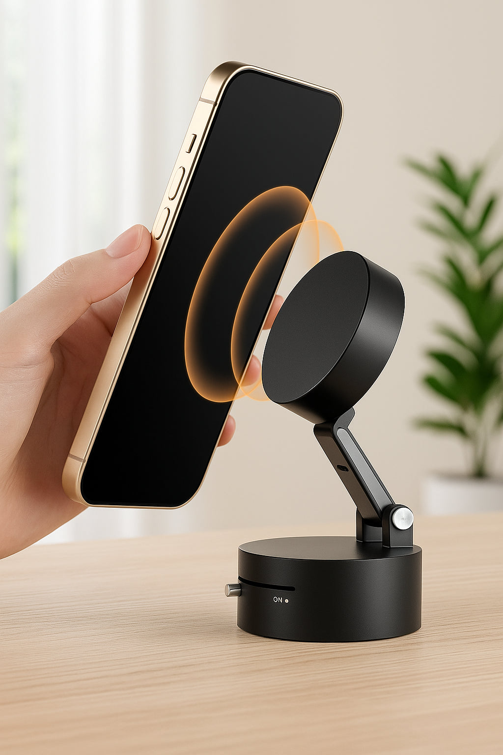 Esse não é um suporte comum. É uma solução elegante, prática e funcional para o seu dia a dia. Com design sofisticado, fixação magnética segura e ajuste de ângulo, ele proporciona uma experiência superior — unindo conforto, estética e eficiência.